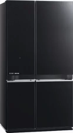 Mitsubishi Electric MR-LR78EN-GBK-R — холодильник Side-by-Side в цвете черный бриллиант с инверторным компрессором. Холодильная и морозильная камеры размораживаются с помощью системы No Frost, которая препятствует образованию наледи на стенках устройства. Панель управления удобно расположена на дверце, имеется цифровой дисплей с индикаторами работы устройства.