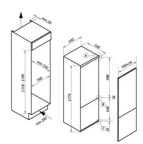 | Габариты ниши для встраивания, ВхШхГ (см) | 177.8-178.5х56х55 | |
