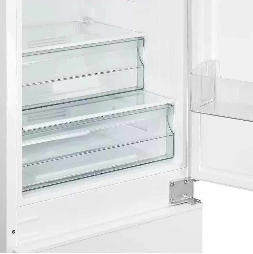 Встраиваемый прибор проще разместить в комнате, даже если общий метраж не такой уж большой. Вы можете спрятать его за декоративной панелью от мебельного фасада — советуем заранее определить нишу и заказывать панели исходя из типа крепления к двери. Способ монтажа в данной модели: жесткое крепление (система door on door) Вы можете поменять направление открывания двери, так как упор переставляемый и ее можно перевесить на другую сторону. Такая функция открывает больше возможностей для установки. Холодильник с морозильником обладает всеми опциями, которые чаще всего ищут и выбирают покупатели. Стандартная конфигурация — универсальный вариант для любой квартиры. Количество камер: 2.