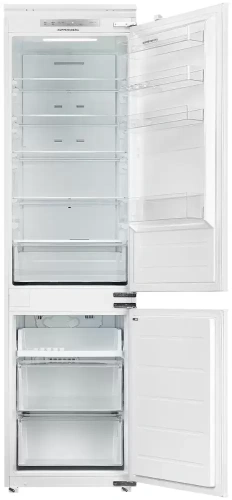 Встраиваемый прибор проще разместить в комнате, даже если общий метраж не такой уж большой. Вы можете спрятать его за декоративной панелью от мебельного фасада — советуем заранее определить нишу и заказывать панели исходя из типа крепления к двери. Способ монтажа в данной модели: скользящее крепление двери (система door sliding) Благодаря внушительным размерам, в частности высоте, она подходит большим пространствам — просторной кухне, еврогостиной. Вы можете поменять направление открывания двери, так как упор переставляемый и ее можно перевесить на другую сторону. Такая функция открывает больше возможностей для установки. Холодильник с морозильником обладает всеми опциями, которые чаще всего ищут и выбирают покупатели. Стандартная конфигурация — универсальный вариант для любой квартиры. Количество камер: 2.