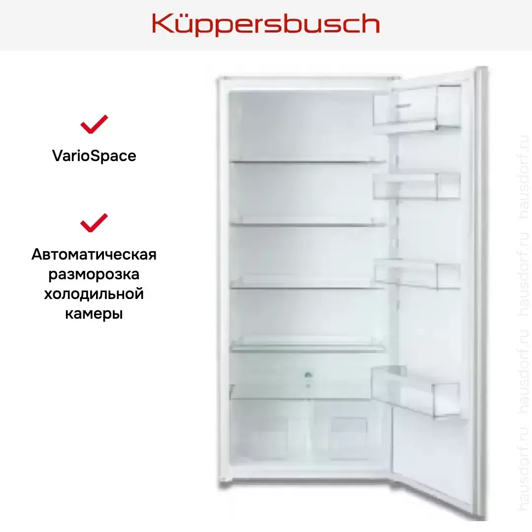Холодильник Kuppersbusch FK 4500.1i — незаменимый помощник на каждой кухне. Система автоматической разморозки освобождает ваше личное время. Вам больше не придется самостоятельно заниматься разморозкой холодильника и тратить на это много сил и времени. Благодаря возможности встраивания модель сможет подойти даже для небольшого помещения. Полки и ящики можно регулировать, что дает возможность устанавливать посуду и продукты любой высоты. Электронная индикация позволит контролировать уровень температуры внутри прибора. Простое и понятное управление осуществляется с помощью сенсорных кнопок. LED-освещение устойчиво к холодным температурам, а также считается одним из самых долговечных.