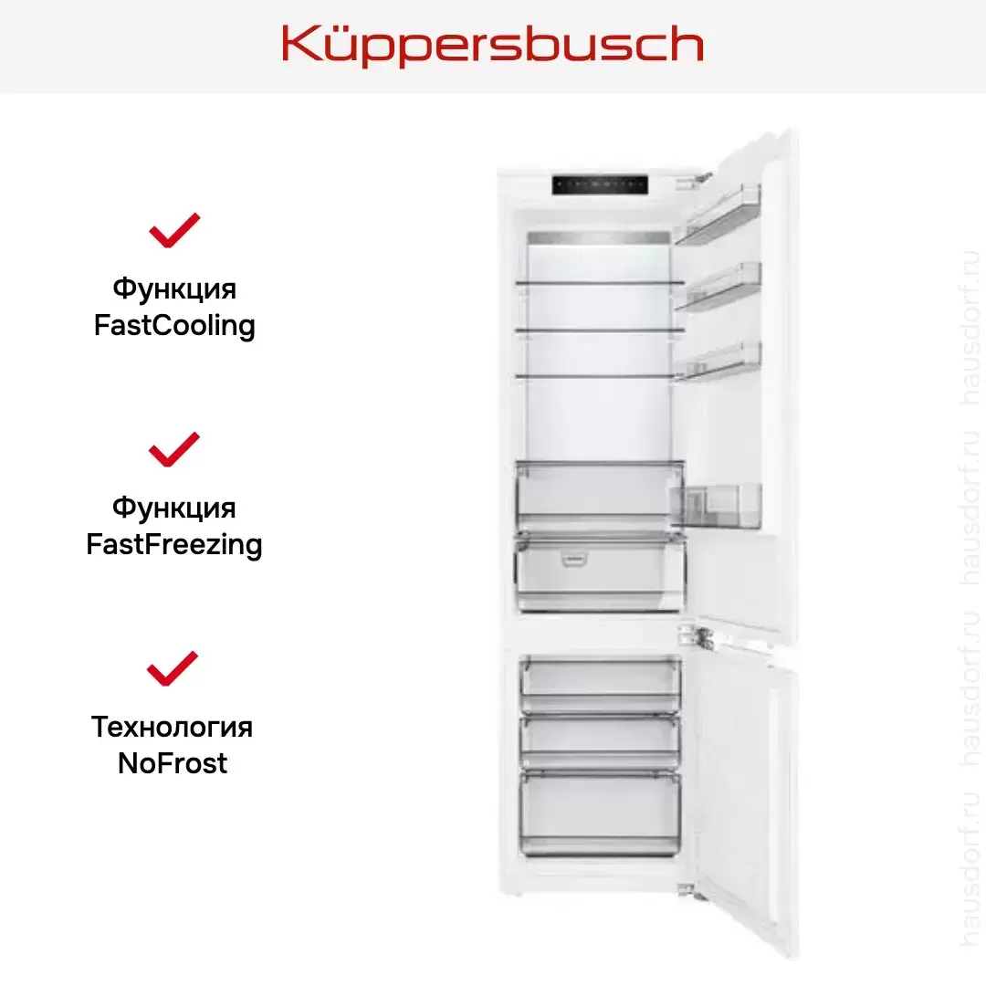 Встраиваемый холодильник Kuppersbusch FKGF 9850.0i — замечательный выбор для всех, кто нуждается в надежном и современном приборе, чтобы обустроить кухню по последнему слову техники.
