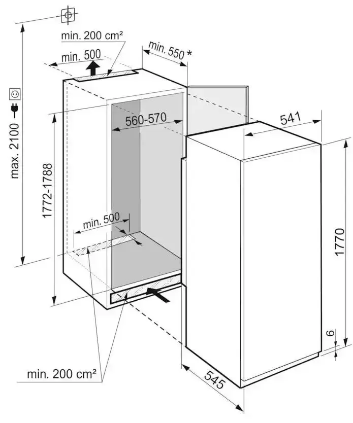 | Габариты ниши для встраивания, ВхШхГ (см) | 177.2-178.8 х 56 - 57 х 55 | |