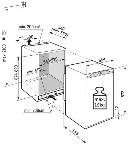 | Габариты ниши для встраивания, ВхШхГ (см) | 87.4-89х56-57х55 | |