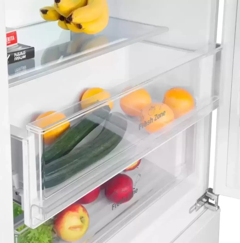 Специальная зона свежести предназначена для правильного и более длительного хранения овощей, фруктов, зелени. В ней поддерживается околонулевая температура, поэтому продукты не перемораживаются и не пересыхают.