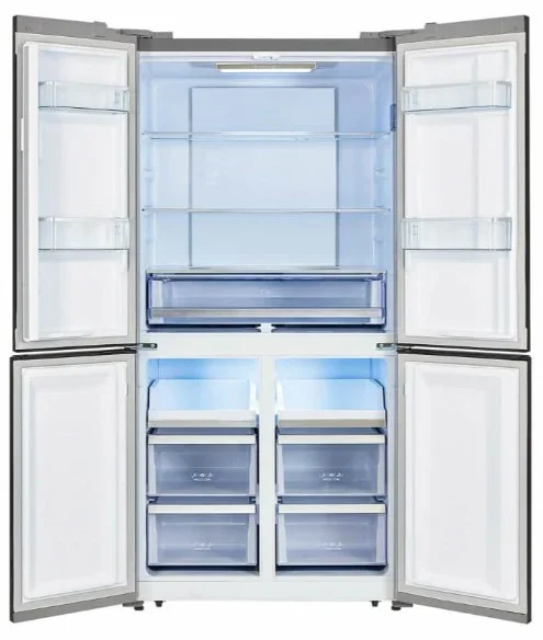 Внешний дизайн сочетает прямые линии и аккуратную фурнитуру, габариты 175×70×60 см делают его компактным для стандартных ниш. Четыре двери и дверной упор Side-by-Side упрощают доступ к разным зонам и позволяют организовать пространство по привычкам семьи. Серебристое покрытие устойчиво к следам пальцев и легко моется, а вес 61 кг гарантирует устойчивость на месте. Уровень шума 41 дБ обеспечит практически бесшумную работу в дневное и ночное время.