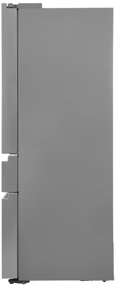 Модель имеет конфигурацию French-Door: он оборудован двумя верхними дверцами для доступа к холодильной камере и выдвижным ящиком в морозилке. Такая конструкция удобна и позволяет удерживать холод внутри камеры при открытии одного из отделений.