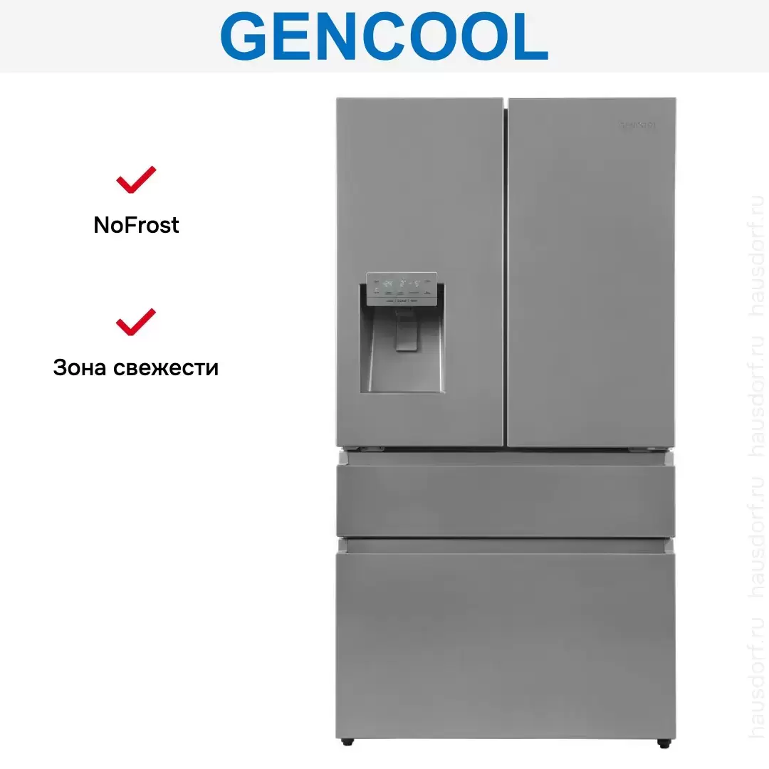 Отдельностоящий холодильник Gencool — это современное устройство, которое предоставляет множество удобств в повседневной жизни. Встроенный ледогенератор производит кубики, а диспенсер воды позволяет получать прохладную воду без необходимости открывать дверь.