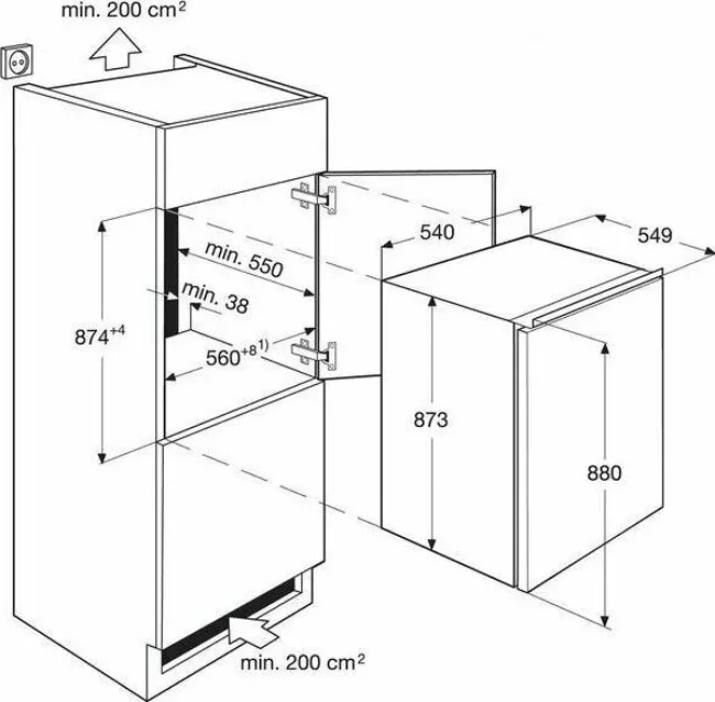 Встраиваемый холодильник Electrolux LRB2AE88S — компактный и продуманный по деталям прибор, созданный для уверенной интеграции в кухонный гарнитур и аккуратного размещения под навесом фасада: его металллический корпус и отсутствие выступающей ручки обеспечивают ровную фронтальную поверхность, которая легко сочетается с любым декором, а система скользящего крепления двери позволяет точно подогнать створку и сохранить механизм от лишних нагрузок; при высоте 88 см, ширине 54 см и глубине 54,9 см аппарат занимает минимальную нишу (87,4×56×55 см), предлагая при этом полезный общий объем 143 литра в одной охлаждающей камере без морозильной секции, что делает его выгодным решением для хозяев, которым важна простота и функциональность. Внутренняя планировка ориентирована на удобство использования: четыре стеклянные полки, из которых две регулируются по высоте и две жестко зафиксированы, дают свободу размещения ёмкостей разных размеров, а вместительный ящик для овощей и фруктов (с возможностью регулировки конфигурации) бережно сохраняет свежесть купленных продуктов; на дверце разместились четыре пластиковые нишы, включая полку с прозрачной крышкой и лоток для яиц, а боковой съемный лоток добавляет гибкости в распределении мелких предметов. Освещение выполнено светодиодными элементами, обеспечивающими яркую и ненавязчивую подсветку при открытой створке, управление реализовано механически с удобным поворотным регулятором и настраиваемым термостатом, а автоматическая система размораживания освобождает от необходимости ручной очистки испарительных поверхностей. Рабочие характеристики гармонично сочетают экономичность и тихую эксплуатацию: статическая система охлаждения на экологичном хладагенте R600a поддерживается одним компрессором и соответствует классу энергопотребления A++, потребляя приблизительно 93 кВт·ч в год и выделяя шум на уровне 36 дБ, что делает его почти бесшумным участником бытового пространства; при напряжении 220-240 В и частоте 50-60 Гц прибор потребляет до 80 Вт мощности, а длина сетевого шнура 2,4 м облегчает подключение. Вес нетто 30,09 кг и общий вес с упаковкой 32 кг, габариты коробки 92×59×62 см упрощают логистику при доставке и монтажных работах. Практичность проявляется и в мелочах: возможность перевешивания дверцы дает свободу при проектировании кухни, а надежная конструкция и простая эксплуатация продлевают срок службы техники; такой холодильный шкаф особенно подойдет встраиваемым решениям для компактных зон, где ценятся аккуратный вид, экономное потребление и системная организация хранения, а артикул 933 035 205 позволит быстро идентифицировать модель при заказе запчастей или аксессуаров.