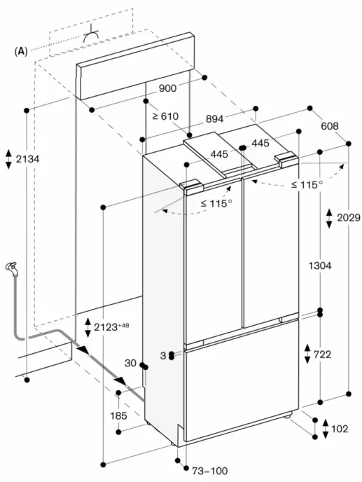 | Угол открывания двери (°) | 115 | |
