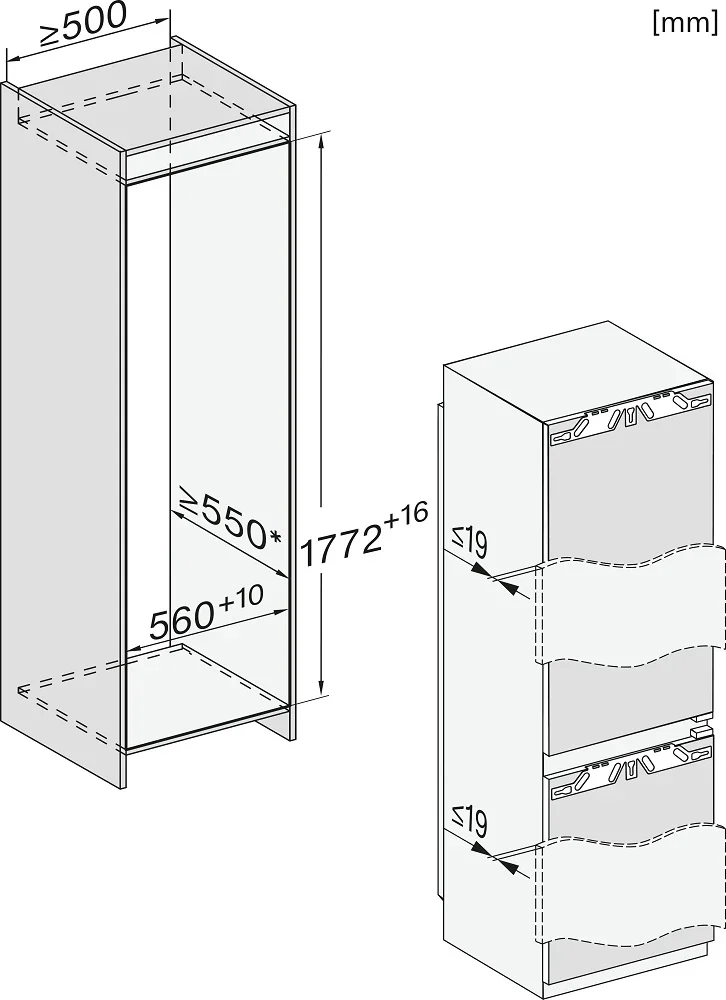 Встраиваемый прибор проще разместить в комнате, даже если общий метраж не такой уж большой. Вы можете спрятать его за декоративной панелью от мебельного фасада — советуем заранее определить нишу и заказывать панели исходя из типа крепления к двери. Способ монтажа в данной модели: жесткое крепление (система door on door) Вы можете поменять направление открывания двери, так как упор переставляемый и ее можно перевесить на другую сторону. Такая функция открывает больше возможностей для установки. Холодильник с морозильником обладает всеми опциями, которые чаще всего ищут и выбирают покупатели. Стандартная конфигурация — универсальный вариант для любой квартиры. Количество камер: 2.
