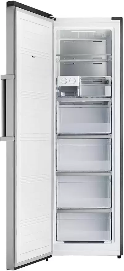Морозильник оснащен системой автоматического размораживания, что значительно облегчает процесс эксплуатации. Производительность замораживания составляет 14 кг/сутки, что позволяет сохранить свежесть и полезные свойства продуктов на долгое время. Внутреннее светодиодное освещение обеспечивает хорошую видимость содержимого, а функция суперзамораживания позволяет быстро заморозить большое количество продуктов.