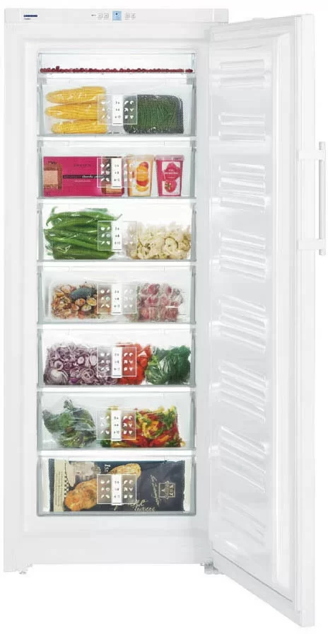 Морозильник Liebherr G 3513 Comfort SuperFrost сочетает в себе изящную форму и оптимальную функциональность. Поклонники здорового питания по достоинству оценят эту морозильную камеру. Свежие овощи, фрукты и ягоды будут на Вашем столе в любое время года, если в доме есть морозильник Liebherr G 3513 Comfort SuperFrost. 8 удобных ящиков позволят разместить продукты наилучшим образом.