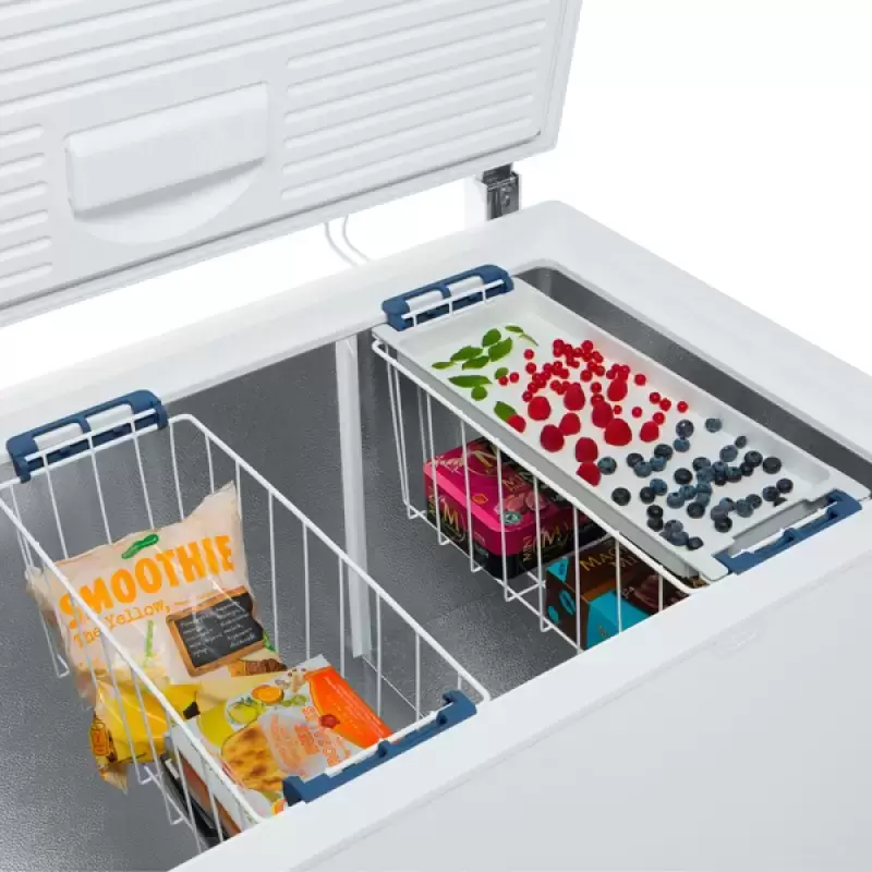 Liebherr GT 4932 Comfort — морозильный ларь высотой 92 см и шириной 136 см. Объем 475 литра сделает эту модель отличным выбором для больших семей, а также для тех, кто предпочитает иметь большой запас продуктов. Как и другие устройства из современной дизайн-серии Swing, он отличается скошенными углами, корпусом, изготовленным из стали, и глянцевым белым фронтом. Ларь может быть установлен вплотную к стене, а климатический класс SN-T позволяет использовать его при температуре окружающей среды от +10°С до +43°С. Для выбора температуры в камере и других параметров работы служит электронная система управления с дисплеем и кнопочной панелью SoftTouch. Размораживание облегчает система Stop Frost со специальной металлической пластиной с повышенной теплопроводностью. Функция суперзамораживания SuperFrost позволит быстро понизить температуру, если предстоит загрузка большого количества продуктов. Морозильная камера позволяет заморозить до 31 кг продуктов в сутки. Для удобства размещения в комплект входят две корзины и поднос для замораживания.