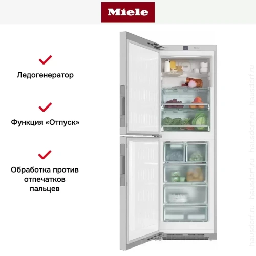 Отдельностоящая холодильно-морозильная комбинация Miele KFNS28463 ED/CS высотой 185 см отличается большим объемом морозильной камеры 126 литров. Корпус цвета нержавеющей стали снабжен покрытием CleanSteel от отпечатков пальцев. Дверца со скрытой ручкой и доводчиком закрывается очень мягко. В контейнерах PerfectFresh Pro поддерживается оптимальная температура и влажность для хранения свежих продуктов. Панель электронной регулировки и индикации температуры FreshTouch с дисплеем расположена за дверцей.