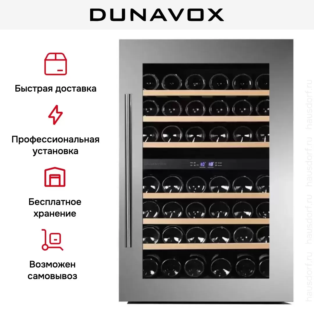 Dunavox DAB-42.117DSS — компрессорный винный шкаф, рассчитанный на одновременное хранение до 42 бутылок объемом 0.75 л. Модель характеризуется динамическим типом охлаждения и предусматривает наличие двух независимых температурных зон. Возможность перенавешивания дверцы гарантирует комфортную интеграцию устройства в готовый кухонный интерьер.