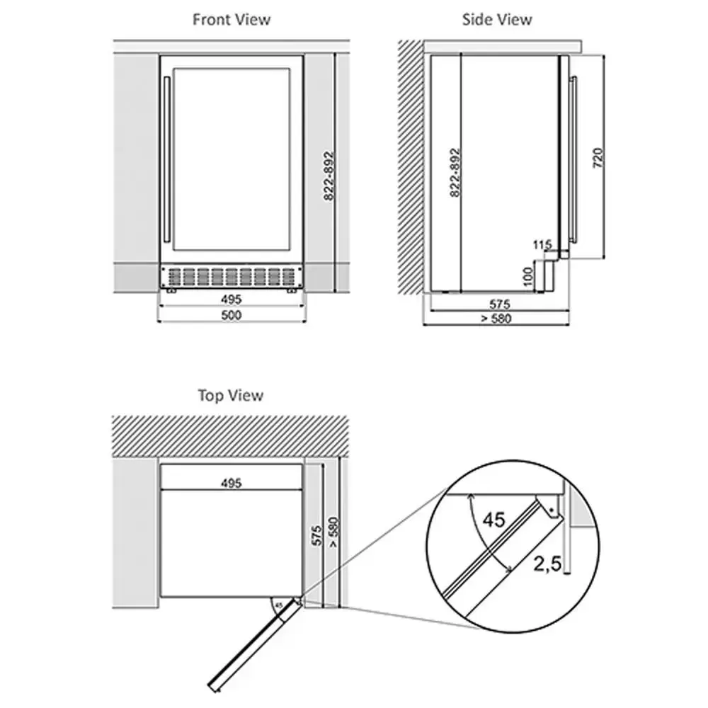 Настройка параметров осуществляется с помощью сенсорных кнопок на панели управления, на дисплее отображается актуальная температура внутри. Камера разделена на две климатические зоны, в каждой из которых вы можете хранить сорта вин, требующие различных условий. Пять полок выполнены из массива бука, который не деформируется со временем.