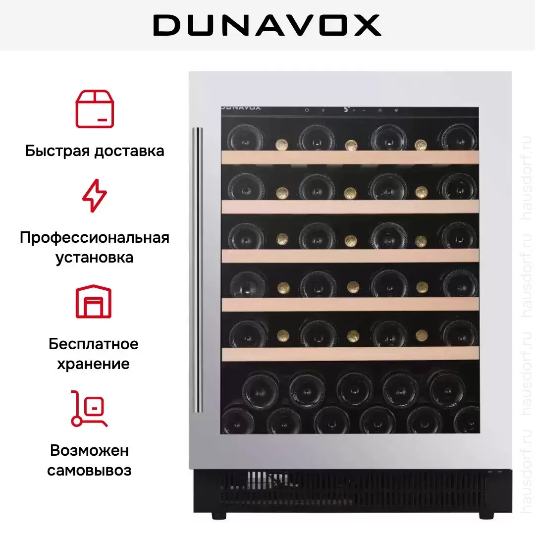 Винный шкаф Dunavox DAUF-46.138SS — элегантное и функциональное дополнение для кухонного или любого другого интерьера. Прибор имеет лаконичные и прямолинейные формы, а также классическое цветовое исполнение — нержавеющая сталь, благодаря чему хорошо интегрируется в разнообразные стилевые решения. Внутри поддерживаются идеальные условия для хранения вина. Бутылки располагаются горизонтально. Для удобной загрузки и выгрузки предусмотрены выдвижные деревянные полочки. Внутреннее освещение не только обеспечивает хороший обзор, но и красиво смотрится. Светодиоды отличаются низким потреблением электроэнергии, а также не нагреваются во время работы, что исключает изменение температурного режима внутри камеры. При желании и необходимости винный шкаф Дунавокс DAUF-46.138SS можно встроить под столешницу или в специальную нишу.
