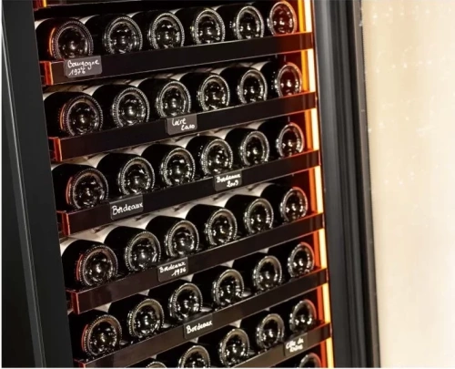 Компактный мультитемпературный винный шкаф вместимостью на 74 бутылки бордо. Модель с сенсорным управлением и информативным дисплеем.