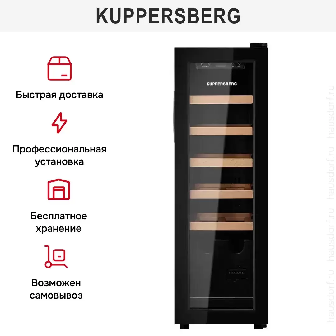 Винный холодильник Kuppersberg RSW 81 имеет одну температурную зону, в которой можно разместить бутылки и единовременно выставить только одну комбинацию настроек. Он устанавливается отдельно, что удобно, если у вас есть специальное помещение — кладовая, погреб и т.д. Благодаря компактным размерам данная модель — отличный выбор для офиса, гостиничного номера. Количество бутылок, которое можно разместить с учетом полной комплектации и из расчета объема бутылки 0,75 л, — 12 шт.