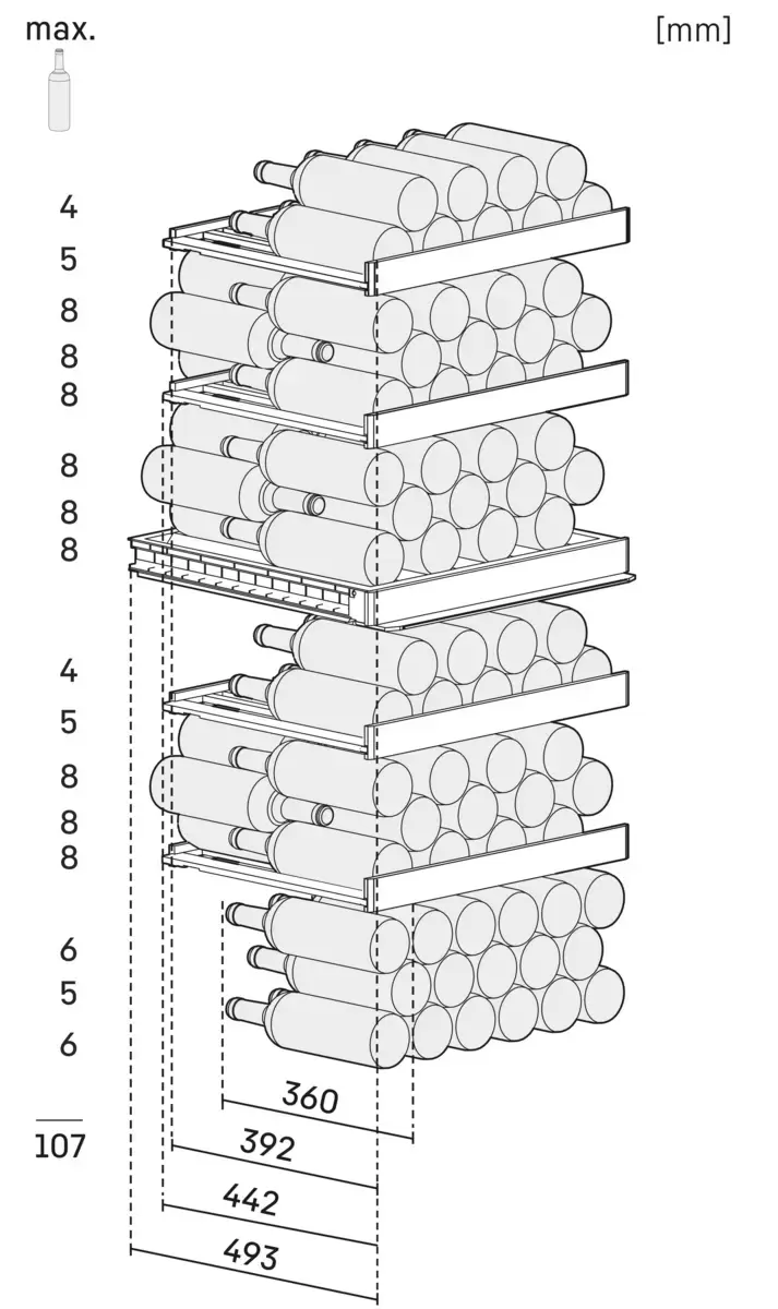 | Вместимость (бутылки 0.75 л) | 107 | |