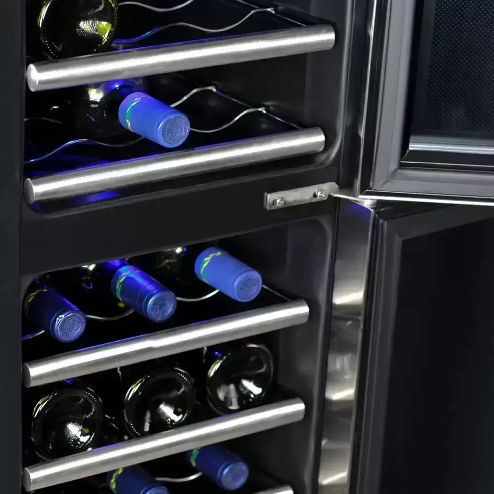 Винный шкаф Meyvel MV21-BF2 (easy) — это правильное хранение любимых напитков. Устройство имеет компактные размеры, которые можно легко уместить даже в небольшом помещении. Прибор отдельностоящего типа, а значит легко перемещается на любое новое место установки. Несмотря на свои габариты модель имеет две температурные зоны, что является основным преимуществом, так как позволяет разместить напитки с различными условиями хранения. Сенсорное управление доступно для пользователей любых возрастов — его отличает простота и быстрота настройки. Полки выполнены из хромированного металла, который не деформируется под нагрузкой. Винный шкаф Мейвел MV21-BF2 (easy) имеет регулируемые ножки, которые помогают компенсировать неровности пола. Тихая работа (показатели по шуму равны 41 дБ) — еще один плюс в пользу данной модели.