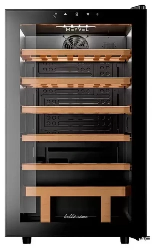 Винный холодильник Meyvel MV24-KBF1 имеет одну температурную зону, в которой можно разместить бутылки и единовременно выставить только одну комбинацию настроек. Он устанавливается отдельно, что удобно, если у вас есть специальное помещение — кладовая, погреб и т.д. Благодаря компактным размерам данная модель — отличный выбор для офиса, гостиничного номера. Количество бутылок, которое можно разместить с учетом полной комплектации и из расчета объема бутылки 0,75 л, — 24 шт.