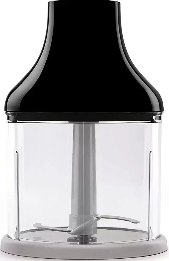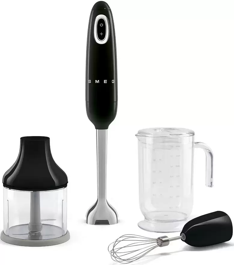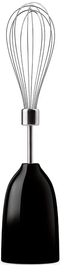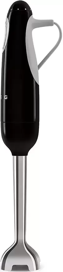 Погружной блендер Smeg позволяет готовить смузи, коктейли, смешивать соусы и заправки и многое другое. Такая конструкция требует вашего участия — нужно держать рукоятку с насадкой и контролировать направление движения. Плюс в том, что можно использовать ее прямо в кастрюле, когда готовите, например, суп-пюре. Корпус сделан в основном из пластика, что уменьшает вес прибора. Он может как влиться в общую гамму интерьера, так и стать ярким акцентом; доминирующий цвет — черный. Благодаря специальным нескользящим ножкам блендер сохраняет устойчивость даже на высоких оборотах.