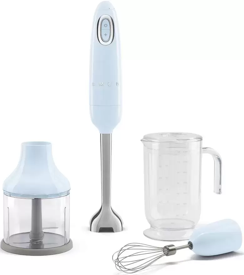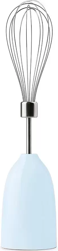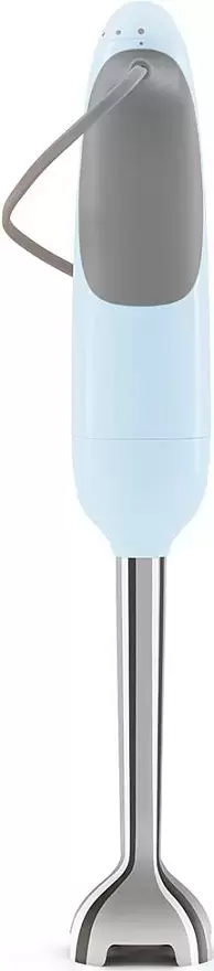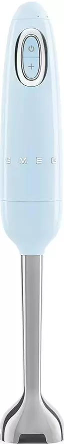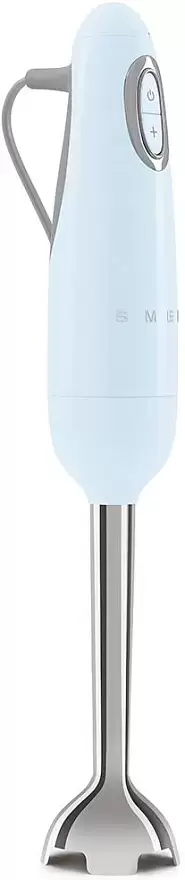 Погружной блендер Smeg позволяет готовить смузи, коктейли, смешивать соусы и заправки и многое другое. Такая конструкция требует вашего участия — нужно держать рукоятку с насадкой и контролировать направление движения. Плюс в том, что можно использовать ее прямо в кастрюле, когда готовите, например, суп-пюре. Корпус сделан в основном из пластика, что уменьшает вес прибора. Он может как влиться в общую гамму интерьера, так и стать ярким акцентом; доминирующий цвет — пастельно-голубой. Благодаря специальным нескользящим ножкам блендер сохраняет устойчивость даже на высоких оборотах.