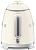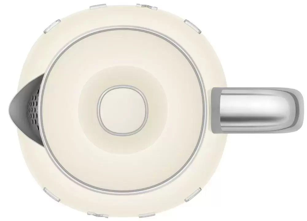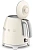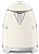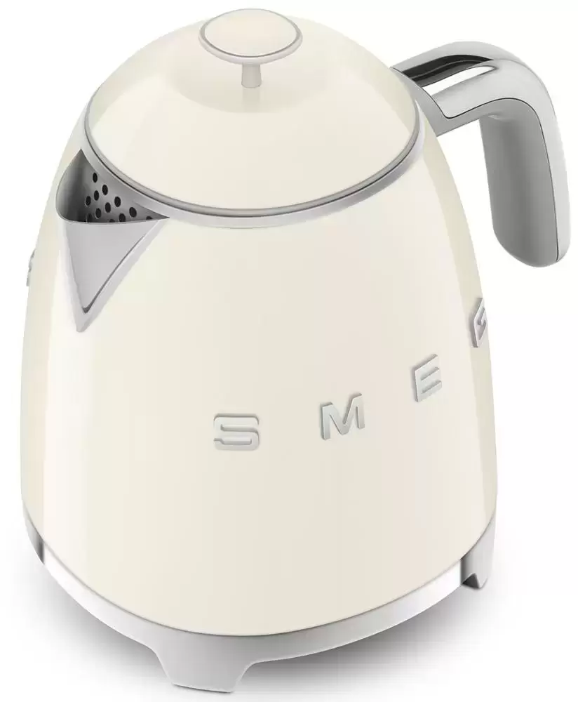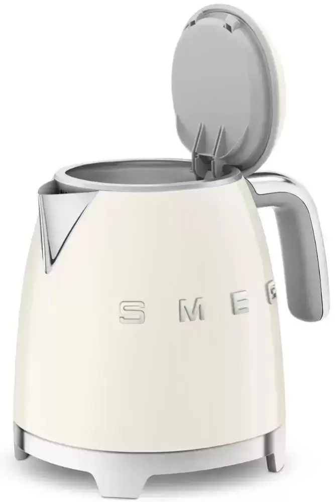 Чайник Smeg KLF05CREU — модель для небольшой семьи, дачи или офиса. Благодаря весу всего 1 кг и высоте 20 см его можно брать с собой в поездку. Модель производства известной итальянской фирмы относится к коллекции в стиле ретро, имитирующей технику 50-х годов 20 века. Округлая форма и глянцевый кремовый цвет корпуса, блестящее хромированное основание и ручка, носик из полированной нержавеющей стали создают единый гармоничный образ. Сам корпус изготавливается из особого пластика, устойчивого к повышению температуры, а внутренняя колба — из нержавеющей стали.