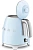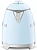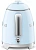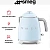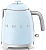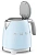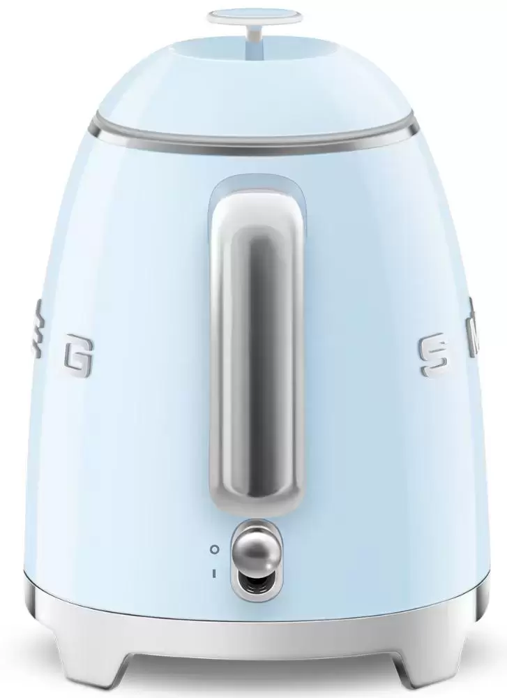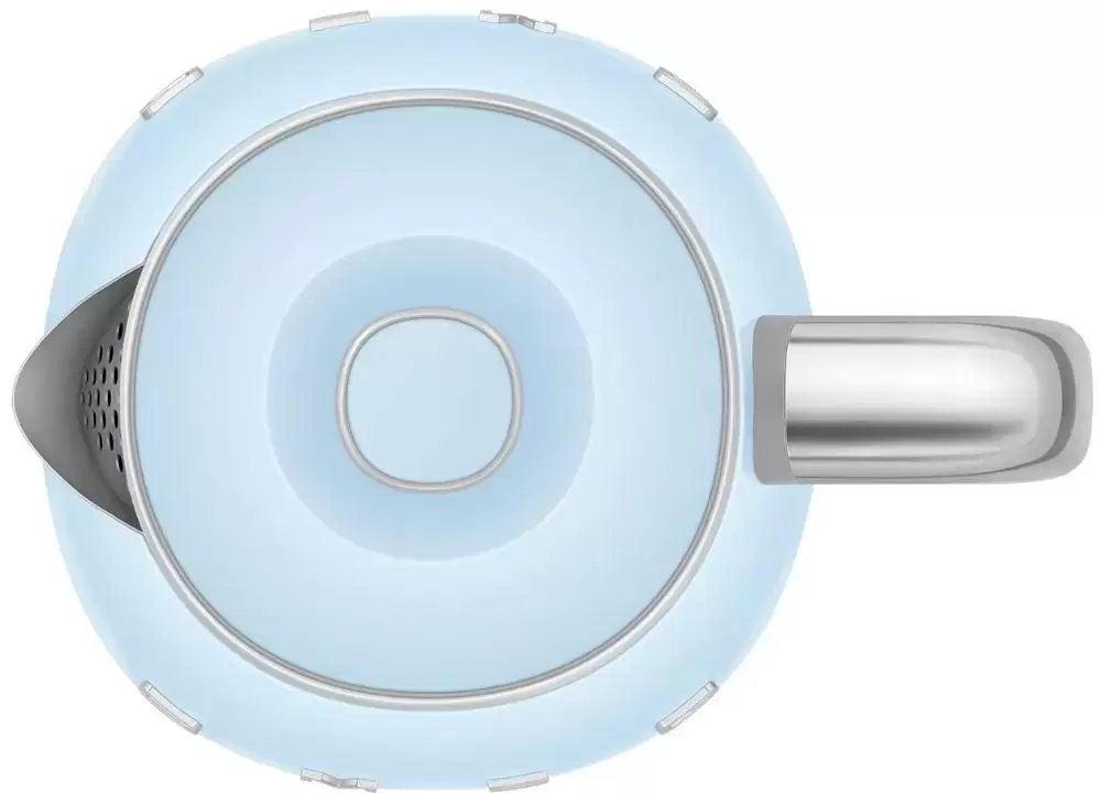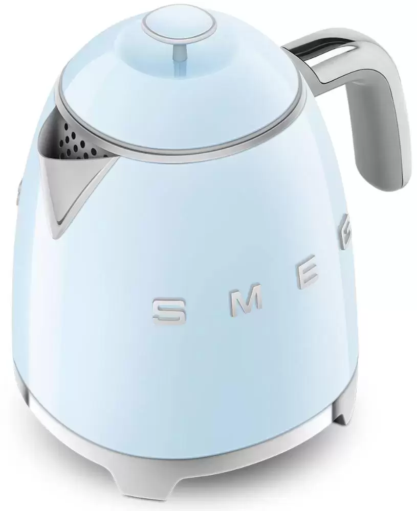 Чайник Smeg KLF05PBEU изготовлен ведущей итальянской фирмой, он относится к известной коллекции в стиле 50-х годов 20 века. Компактная модель высотой 20 см и весом 1 кг может подойти для семей из 2-3 человек, а также для поездок на дачу или использования в офисе. Привлекает внимание корпус необычного пастельно-голубого цвета с блестящими деталями — удобной хромированной ручкой, полированным стальным носиком, оригинальным рычагом включения. Сам корпус изготовлен из специального пластика, безопасного и термостойкого, а его внутренняя часть сделана из нержавеющей стали.