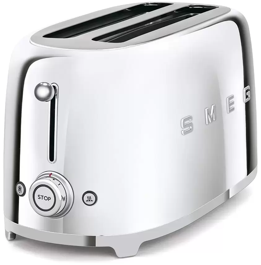 Стильная и современная модель тостера Smeg в компактном корпусе в традиционном хромированном исполнении подойдет для любого интерьера, будь то классика или хай-тек. Корпус выполнен из высококачественной нержавеющей стали, которая не подвержена коррозии и хорошо переносит перепады температур.