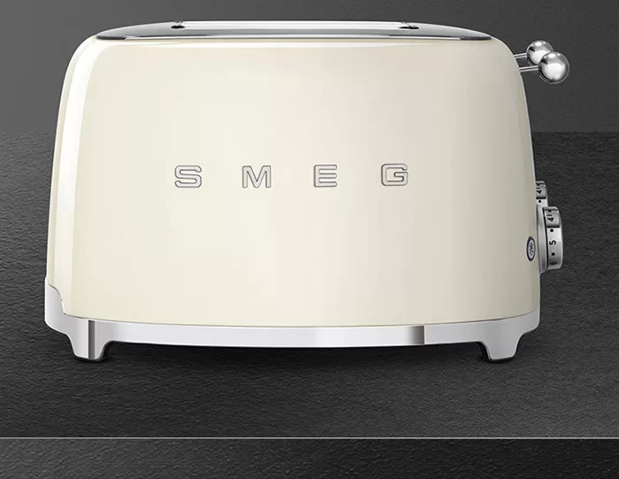 Стильный универсальный кремовый тостер Smeg в корпусе из нержавеющей стали был разработан в стиле 50х.