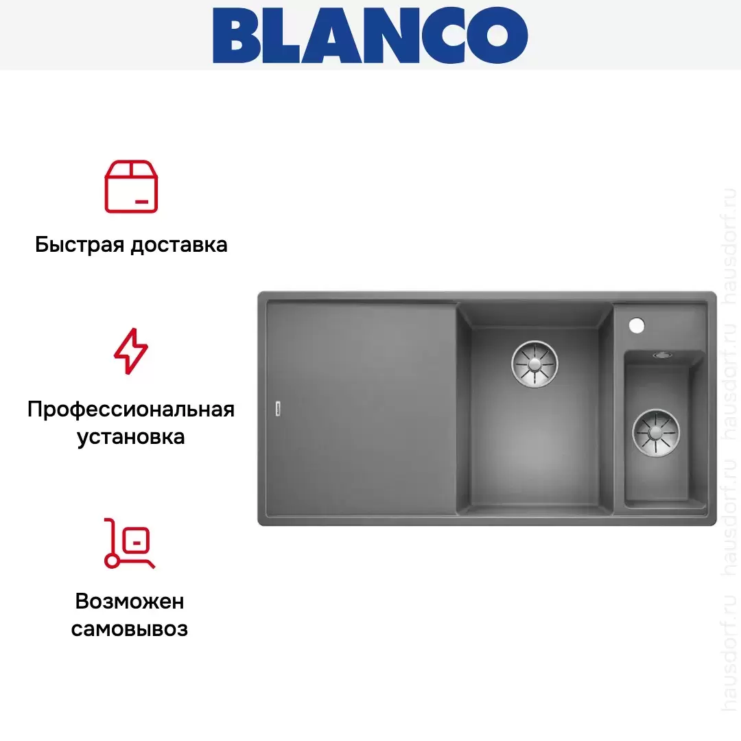 Мойка Blanco AXIA III 6 S чаша справа, доска стекло клапан-автомат InFino® алюметаллик