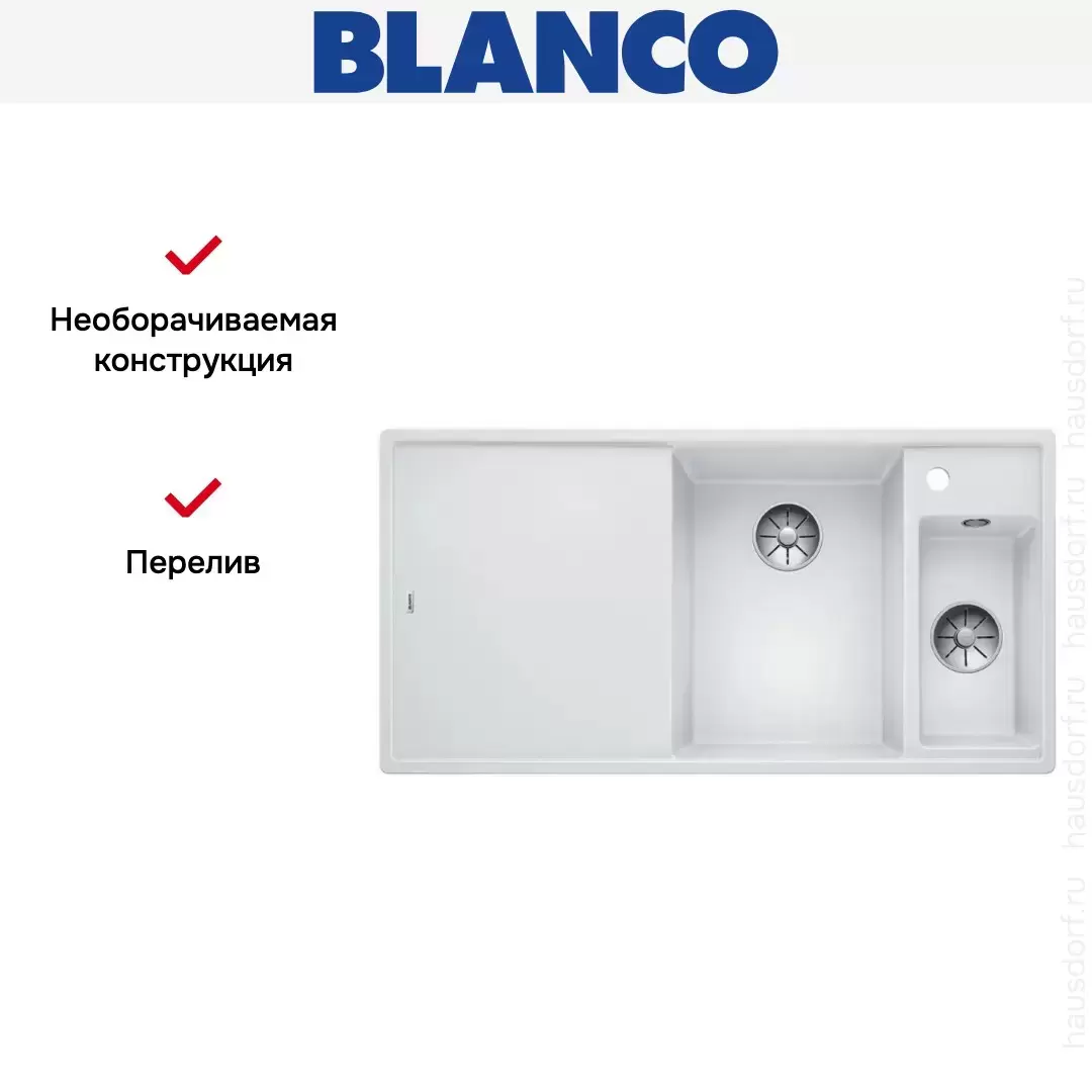 Мойка Blanco AXIA III 6 S чаша справа, доска стекло клапан-автомат InFino® белый