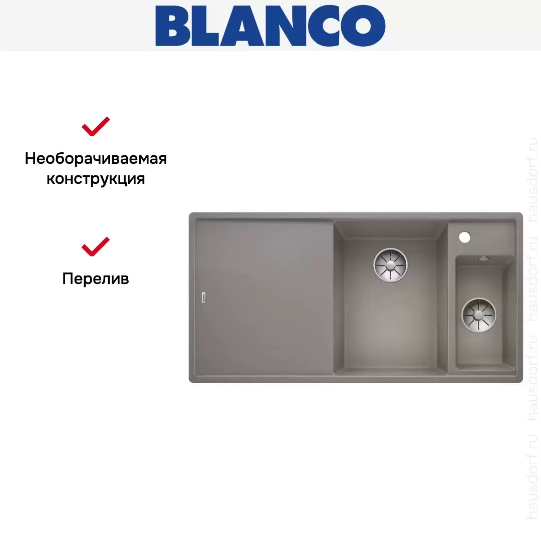 Мойка Blanco AXIA III 6 S чаша справа, доска стекло клапан-автомат InFino® серый беж