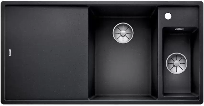Blanco AXIA III 6 S — гранитная необорачиваемая мойка с просторным крылом для сушки посуды. Высококачественный перелив C-overflow® и отводная арматура InFino® с двумя корзинчатыми вентилями элегантно интегрированы и очень просты в уходе. Модель укомплектована коландером и разделочным столиком из ясеня.