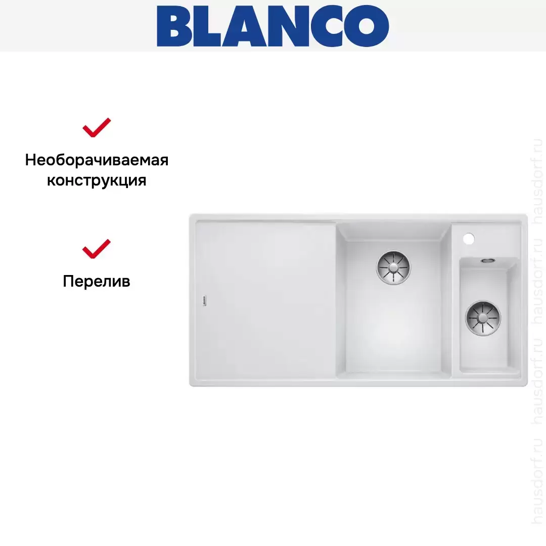 Мойка Blanco AXIA III 6 S чаша справа, доска ясень клапан-автомат InFino® белый