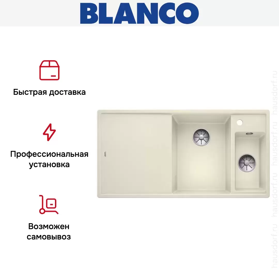 Мойка Blanco AXIA III 6 S чаша справа, доска ясень клапан-автомат InFino® жемчужный