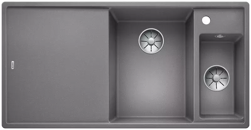 Blanco AXIA III 6 S-F — практичная мойка для кухни с двумя разноразмерными чашами. Модель дополнена ультратонким кантом и оптимально подходит для установки в один уровень со столешницей. В комплекте поставляются многофункциональный коландер и разделочный столик из ясеня.