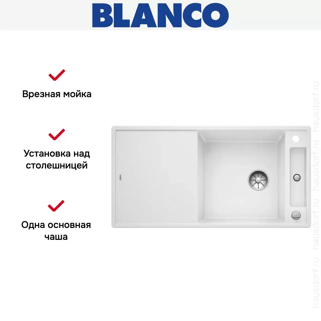 Мойка Blanco AXIA III XL 6 S доска ясень клапан-автомат InFino® белый