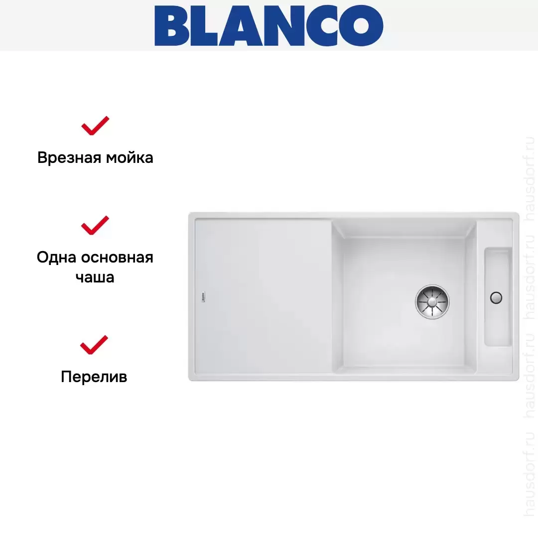Мойка Blanco AXIA III XL 6 S-F доска стекло клапан-автомат InFino® белый