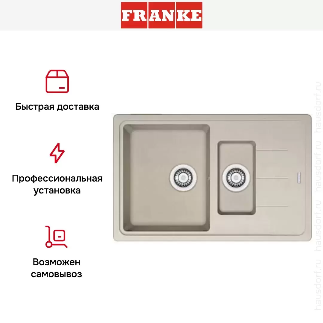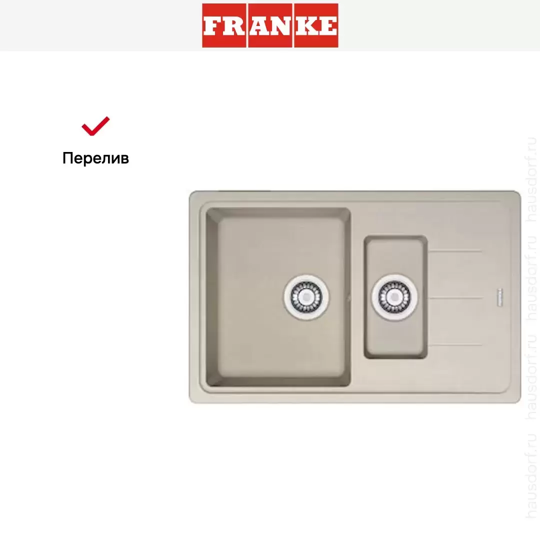 Обратите внимание на дизайнерские отличия мойки Франке, которые помогут в создании идеальной кухни в вашем доме. Она выполнена в цвете бежевый. Основной материал — фрагранит, он гарантирует надежность и долгие годы службы без повреждений.