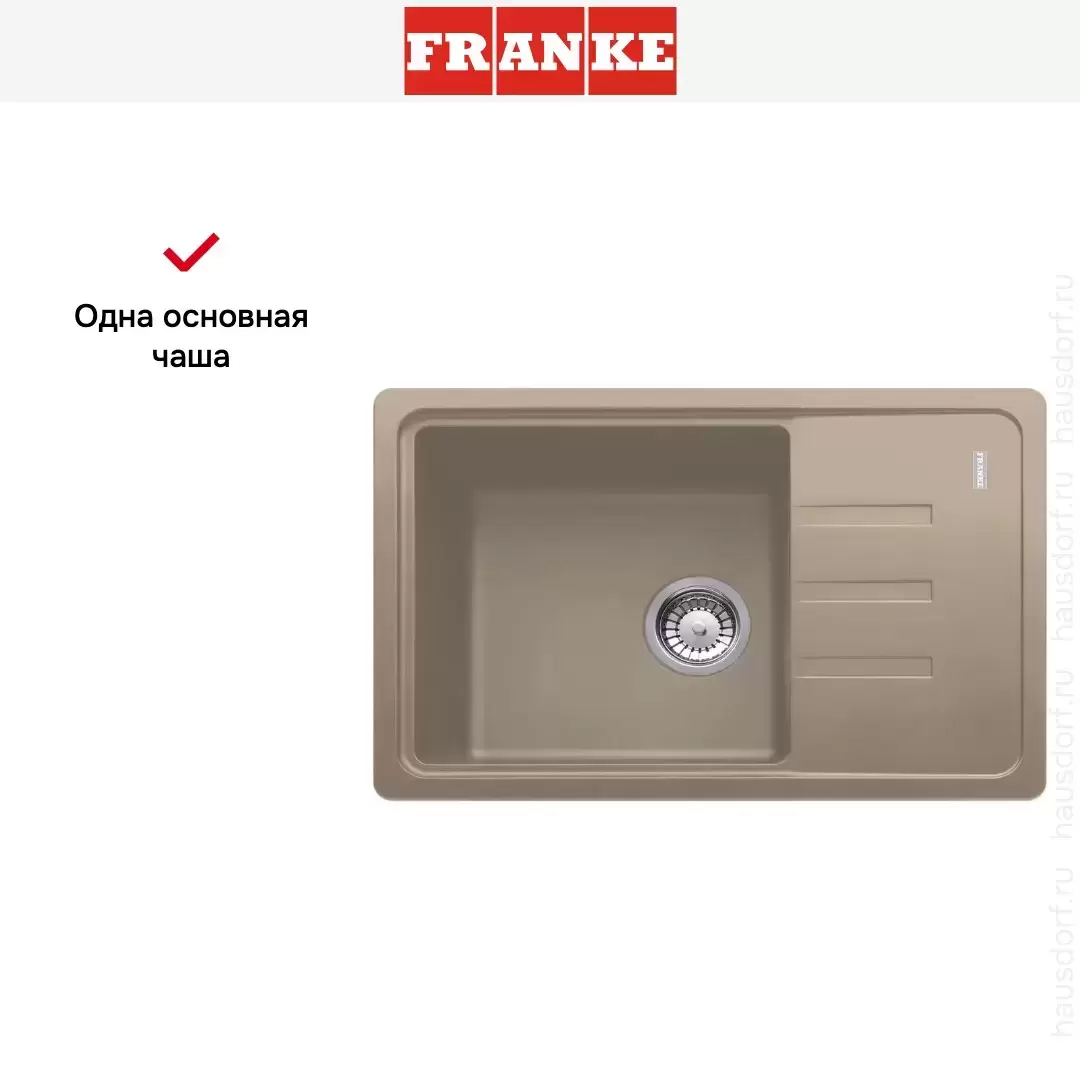 Обратите внимание на дизайнерские отличия мойки Франке, которые помогут в создании идеальной кухни в вашем доме. Она выполнена в цвете миндаль. Основной материал — фрагранит, он гарантирует надежность и долгие годы службы без повреждений. Крыло, расположенное является дополнительным рабочим пространством, на котором можно сушить посуду, разделывать мясо и нарезать овощи.