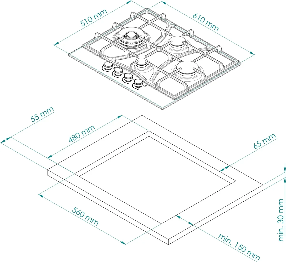 Выбор газовой варочной панели чаще всего обусловлен тем, что в частный дом или квартиру проведен именно газ в качестве обогрева. Работать с этой моделью довольно просто, так как мощность нагрева видна невооруженным взглядом — по силе огня в горелке. Количество конфорок в этой модели: 4.