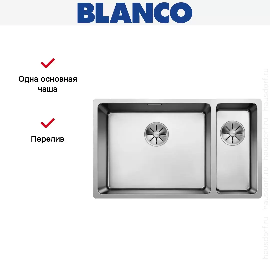 Мойка Blanco ANDANO 500/180-U, чаша слева нержавеющая сталь полированная