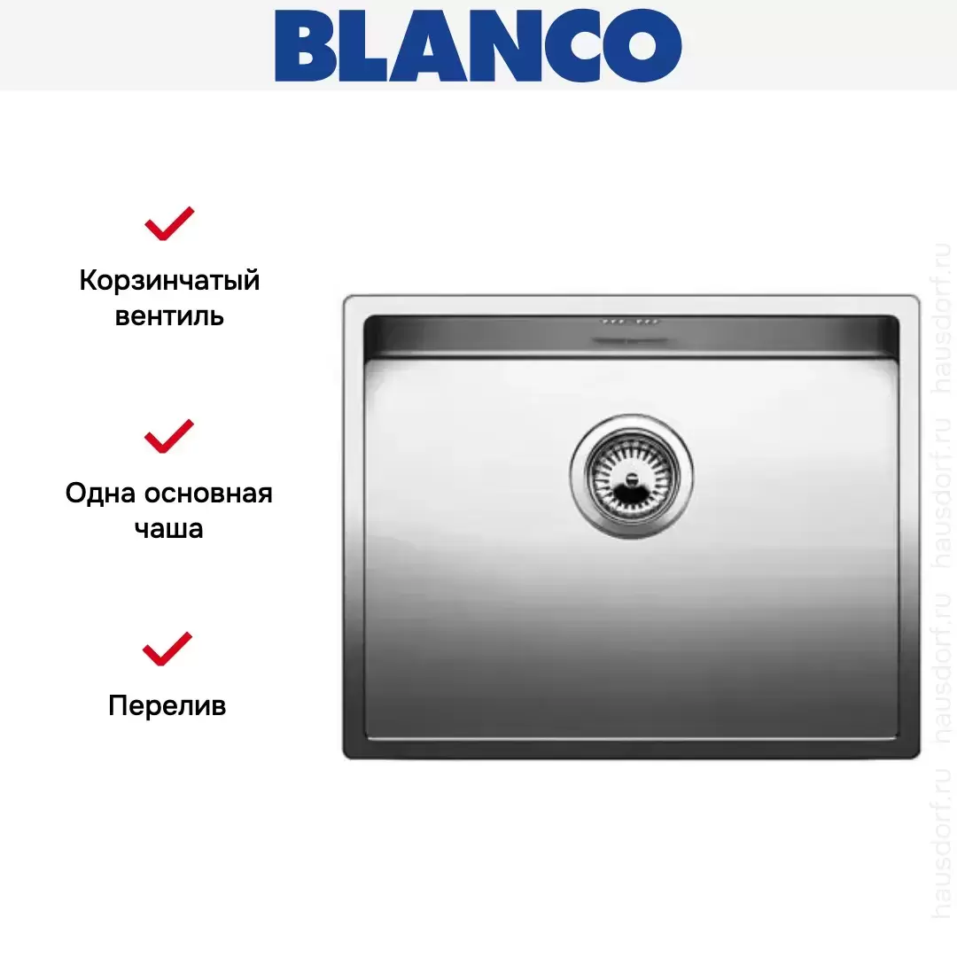 Обратите внимание на дизайнерские отличия мойки Бланко, которые помогут в создании идеальной кухни в вашем доме. Она выполнена в цвете нержавеющая сталь. Основной материал — нержавеющая сталь, он гарантирует надежность и долгие годы службы без повреждений. У этого покрытия приятная полированная текстура.