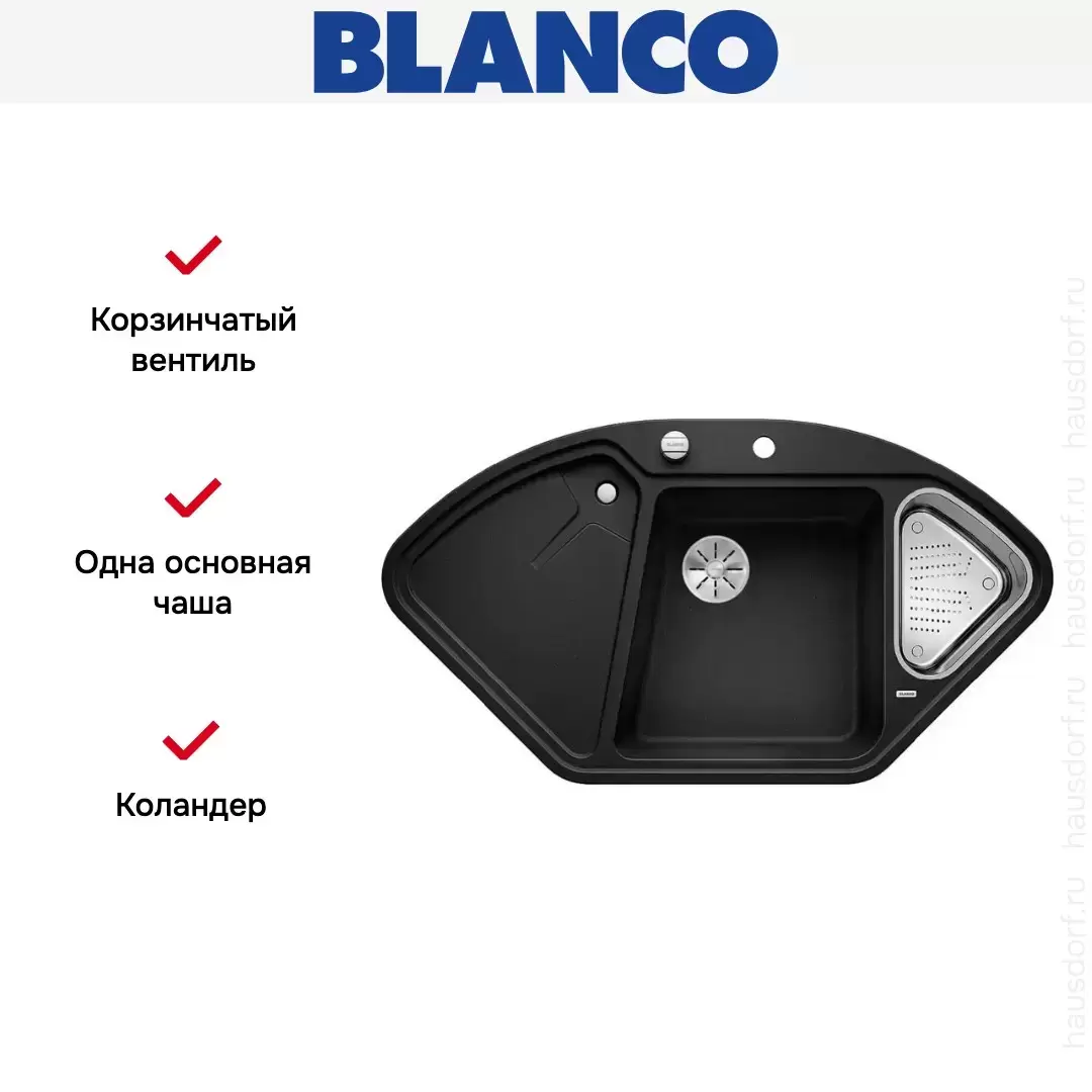 Мойка Blanco DELTA II-F SILGRANIT клапан-автомат InFino® антрацит