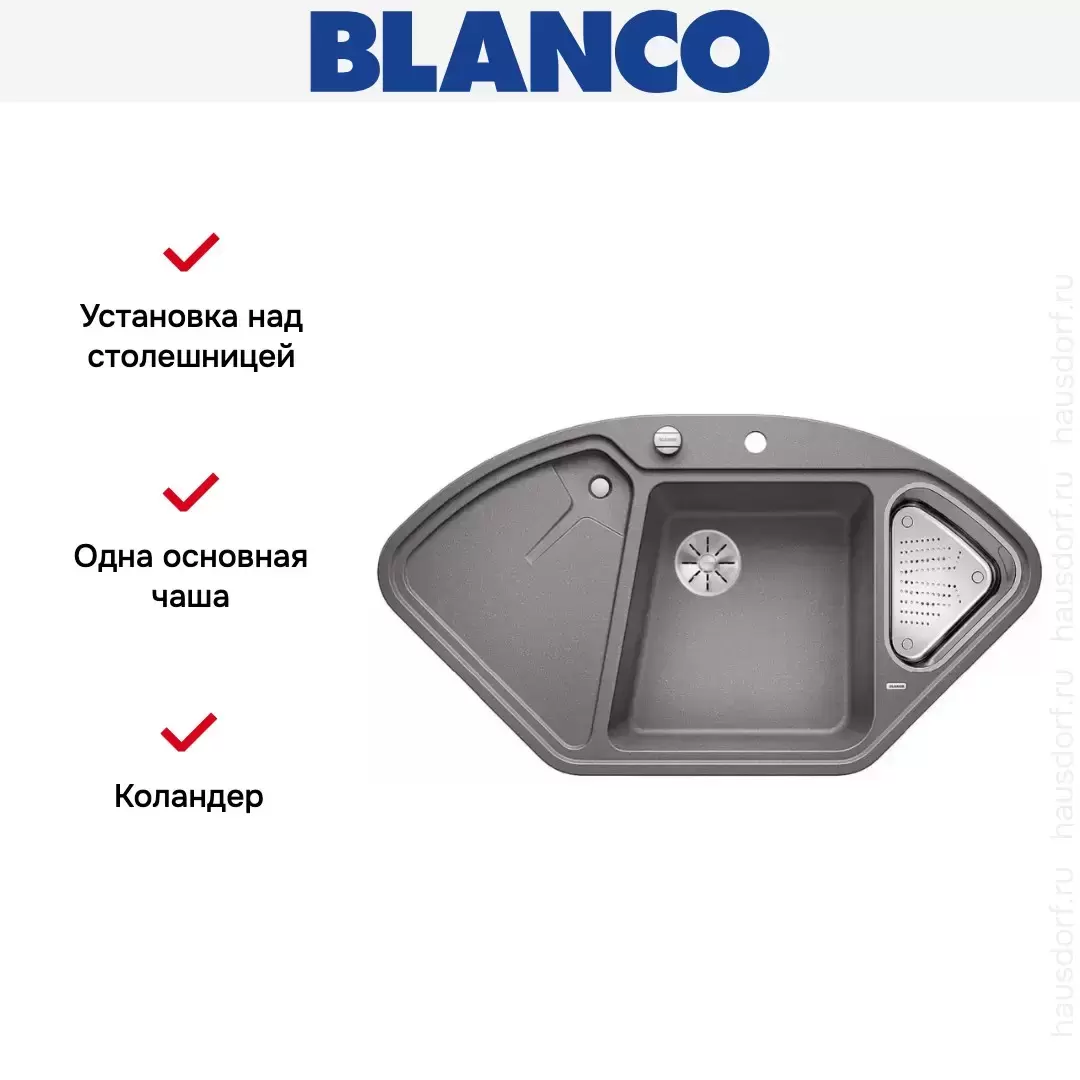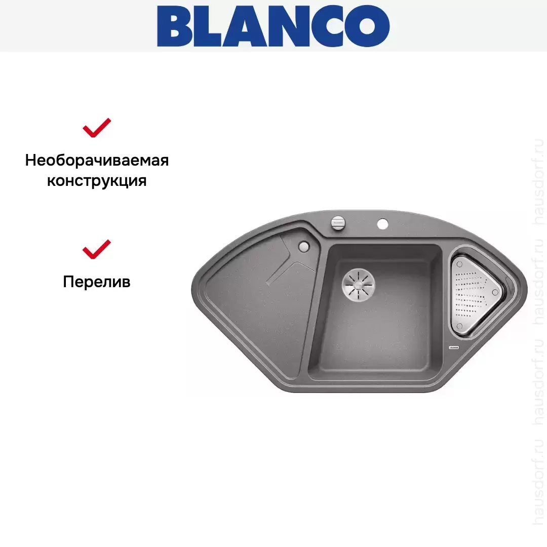 Мойка Blanco DELTA II SILGRANIT клапан-автомат InFino® алюметаллик