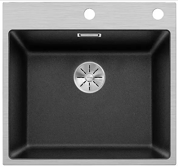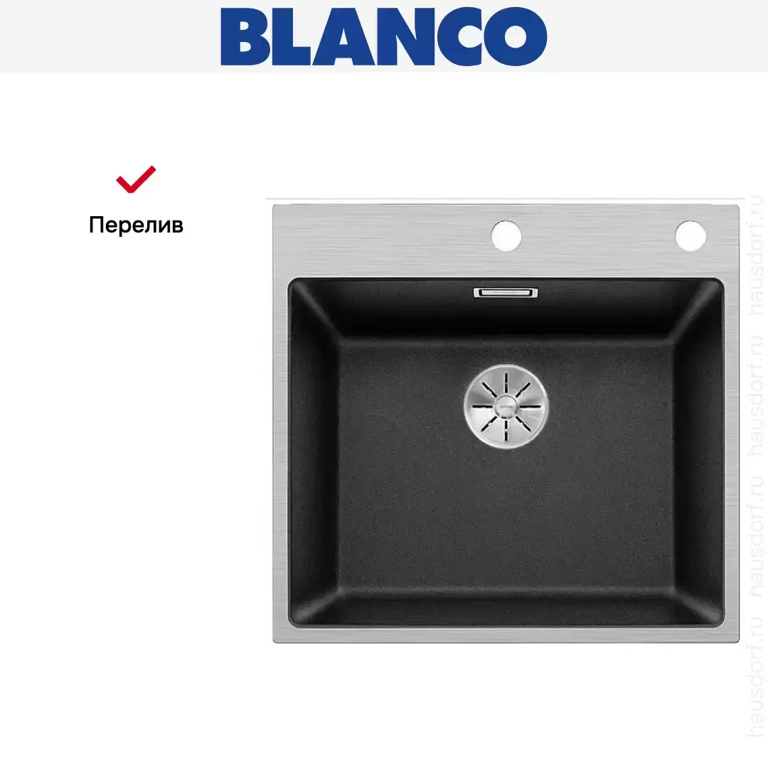Blanco SUBLINE 500-IF/A — элегантная гранитная мойка в обрамлении из нержавеющей стали. Модель дополнена гигиеничным переливом C-overflow®, исключающим риск затопления. Клапан-автомат позволяет закрывать и открывать сливное отверстие поворотом переключателя, расположенном на заднем канте чаши.